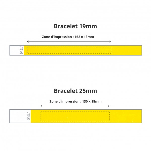 Disponible en 19 mm (format standard) ou 25 mm (visuel plus large), le bracelet s’adapte à tous les besoins, que ce soit pour une identification discrète ou un visuel plus impactant.