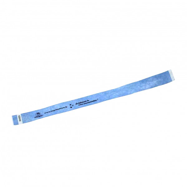 ChèqueBracelet Tyvek personnalisé en impression sérigraphie 1 couleur noire, idéal pour le contrôle d’accès et l’identification lors d’événements de courte durée. Indéchirable, inviolable et économique, il constitue le standard de l’événementiel pour une utilisation de 24 à 48 heures.