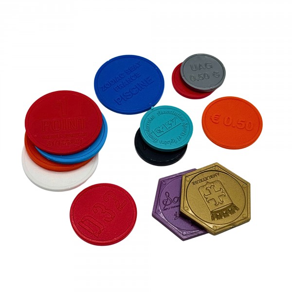 ChèqueLe jeton gravé est un incontournable des événements. Durable et élégant, il convient parfaitement aux jetons de bar, jetons de vestiaire ou jetons de festival à forte valeur perçue.