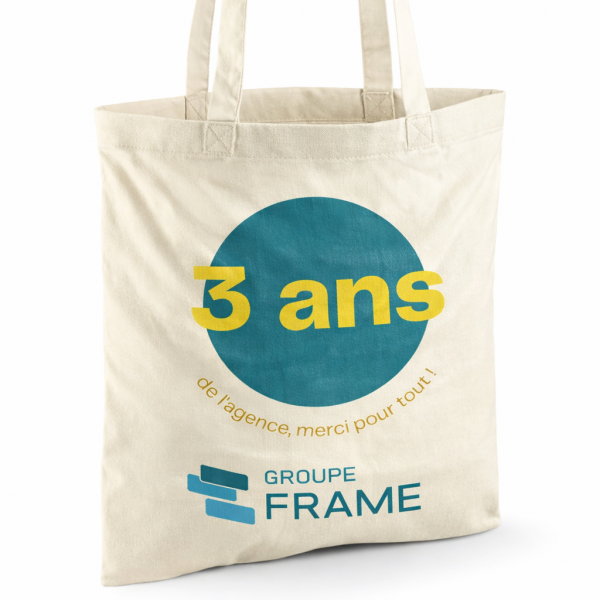 ChèqueSac à bandoulière 100% coton, 140g/m². Se porte à la main ou à l'épaule.